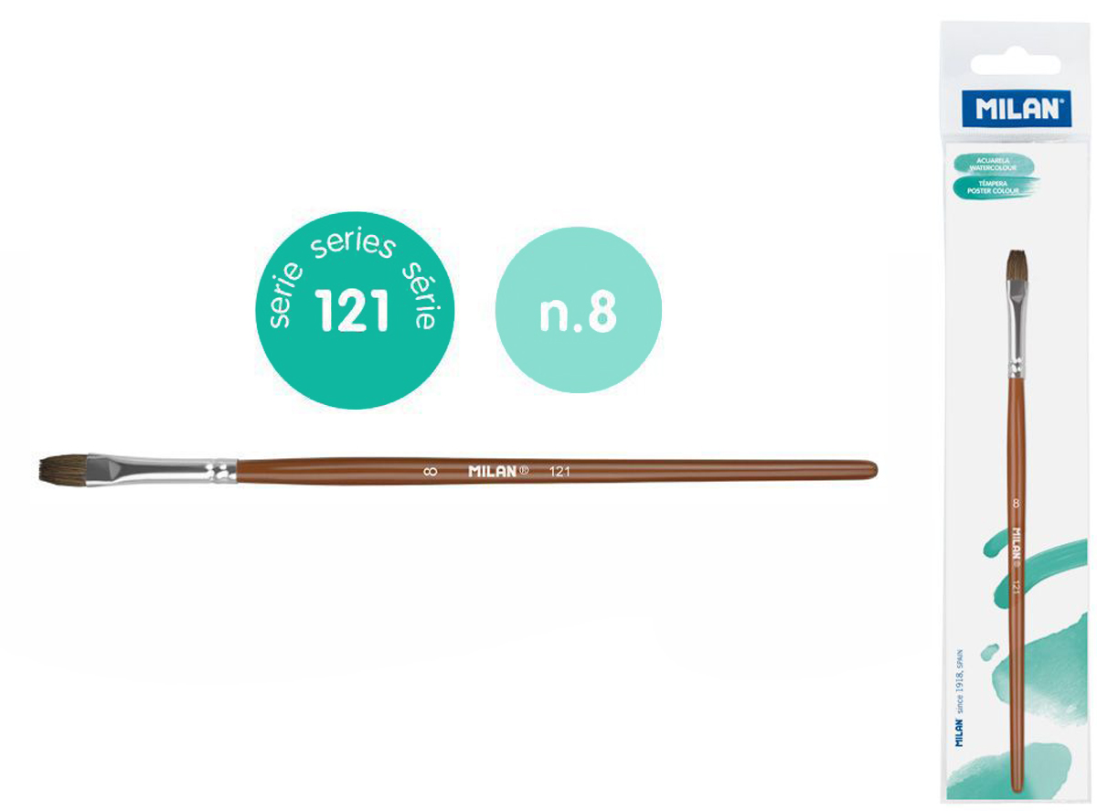 Opakowanie Pędzel płaski z włosia koziego seria 121 nr 8 Milan 1 szt. na blistrze