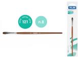 Szkolny płaski pędzel serii 121 nr 8 z krótkim drewnianym trzonkiem.