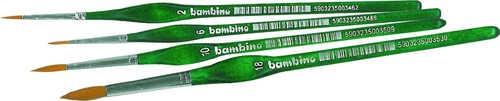 Doskonałej jakości pędzle nylonowe. Składają się z trwałego trzonu solidnie spajającego nylonowe włosie. Idealnie sprawdzą się w malowaniu farbami plakatowymi, akwarelowymi. Dostępne w rozmiarach: 01, 02, 04, 06, 08, 10, 12, 14, 16, 18.