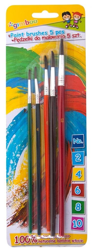 Pędzelki GIMBOO 5 sztuk: rozm.2-4-6-8-10 blister mix kolorów.
