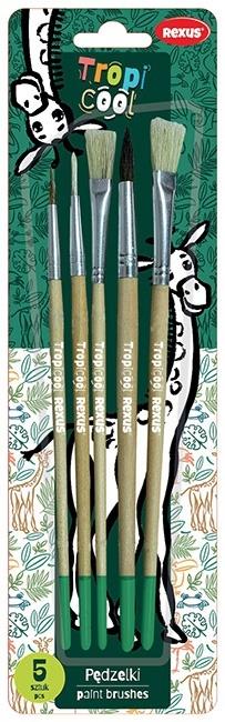 Zestaw okrągłych i płaskich pędzelków w różnych rozmiarach, doskonale nadających się na zajęcia plastyczne. n Włosie pędzelka naturalne połączone bezszwowo z trzonkiem aluminiową skuwką. n Opakowanie blistrowe: 5szt.nW zestawie 2 płaskie pędzle - rozmiar 12 i 8 oraz 3 okrągłe - rozmiar 4, 6, 10. Na pędzelkach motyw z serii Rexus Teens
