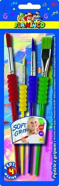 Zestaw pędzli z gripem Soft Touch, rodzaj wlosia: syntetyczne, rodzaj końcówki: płaska i okrągła, NR 12, 2, 6, 10, blister 4szt. ref. PS-05