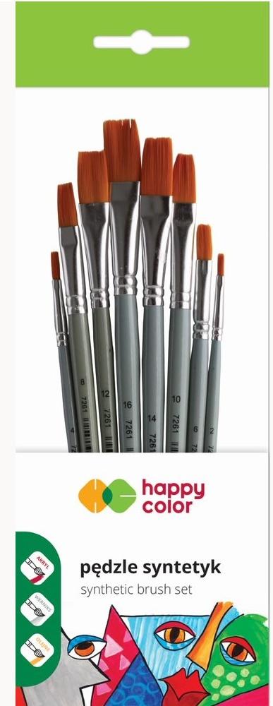 Pędzle artystyczne syntet.płaskie 8szt HAPPY COLOR