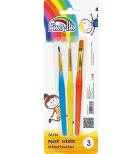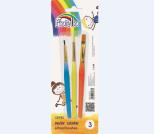 zestaw 3 pędzelków w krótkich, kolorowych uchwytach z przezroczystego plastiku