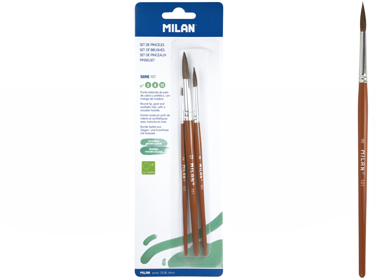 Opakowanie Pędzle okrągłe z włosia koziego Milan seria 101 3 sztuki na blistrze