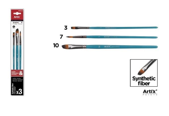 Profesjonalny pędzel wykonany z bardzo miękkiego włosiasyntetycznego. Idealny do tempery, farb akrylowychi akwareli. Metalowa skuwka i korpus z drewnalakierowanego na turkus. Długość: 19,5 cm. Blister3 sztuki: 2 z płaską skuwką nr 3 i 10 oraz1 z okrągłą skuwką nr 7.