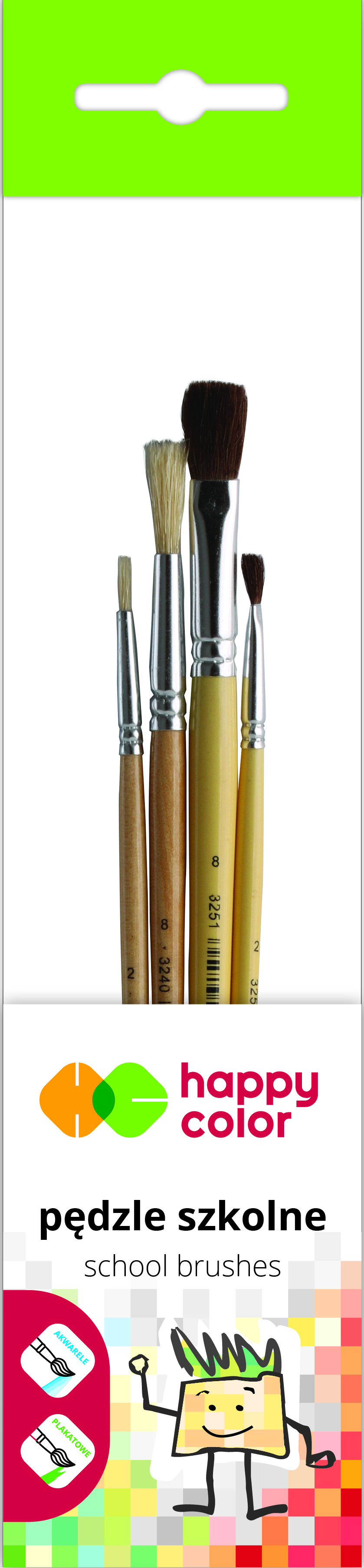 Opakowanie Pędzle szkolne mix włosia A 4szt HAPPY COLOR