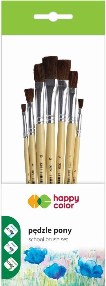 Opakowanie Pędzle szkolne pony płaskie 7szt HAPPY COLOR