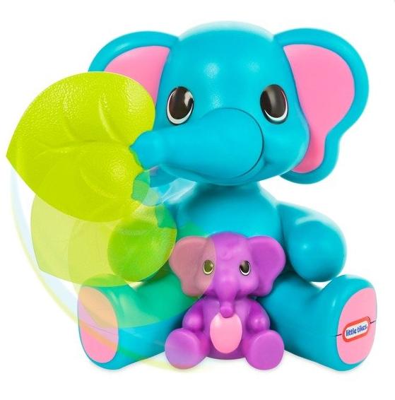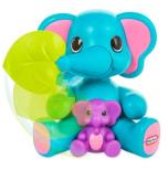 Słonik posiada w zestawie małego słonika, którego można przykrywać lub odkrywać zielonym listkiem. Dodatkowo słonik dzięki temu, że posiada obrotowy spód, potrafi się kręcić w kołko. Odkrywaj i zakrywaj małego słonika listkiem - zabawa w chowanego nigdy się nie znudzi!