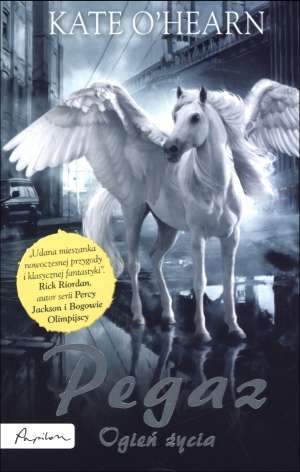Płomień olimpijski słabnie i dlatego słabną moce bogów. Kiedy do Olimpu wdzierają się Nirady, bogowie nie mają szans. Ich świat ulega destrukcji. Skrzydlaty Pegaz wyrusza do świata ludzi, żeby znaleźć dziewczynkę, która nosi w sobie przekazywany z pokolenia na pokolenie ""zapasowy"" płomień olimpijski.Uderzony przez piorun szalejącej w Nowym Jorku burzy, pozbawiony złotej uździenicy, którą ukradł złodziej olimpijski, Paelen, Pegaz ląduje na dachu nowojorskiego wieżowca - tuż nad mieszkaniem, zajmowanym przez Emily i jej tatę.... Seria Pegaz to mistrzowskie połączenie mitologii ze współczesnością. Młodym czytelniczkom z pewnością spodoba się również fakt, że zarówno Pegaz, jak i wszystkie mityczne postacie, odmawiają jedzenia warzyw, owoców i wszelkiej innej zdrowej żywności. Karmieni boską ambrozją, na ziemi czerpią energię ze zjadania lodów, batoników z automatu oraz cukru, miodu i słodkich płatków. Autorka przedstawia bogów olimpijskich z pewna dawką humoru, który miesza się z pełnymi grozy opisami ataków morderczych Nirad, a także wzruszającymi scenami, w których pełna żalu po śmierci mamy Emily zajmuje się Pegazem. Historia Emily i Pegaza to jedna z tych powieści, po przeczytaniu których od razu szuka się kolejnego tomu.