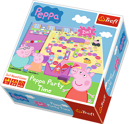 Peppa obchodzi dziś swoje urodziny! Już od rana wyczekuje gości, którzy mają przybyć na jej przyjęcie pełne wspaniałych niespodzianek. Jako uczestnicy przyjęcia będziecie brać udział w różnych atrakcjach. A może wybierzecie się ze Świnką Peppą do przedszkola? Jej przyjaciele też się tam wybierają. Kto pierwszy dotrze na miejsce? Po drodze zdarzą się wesołe przygody. Zawartość: - dwustronna plansza - tarcza losująca - 20 kart postaci - 4 pionki z podstawkami - 4 trójdzielne żetony prezenty - korona - gumka - instrukcja Wiek graczy: + Liczba graczy: 2-4 Czas rozgrywki: 10-20 minut