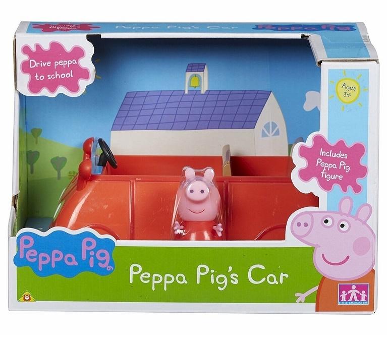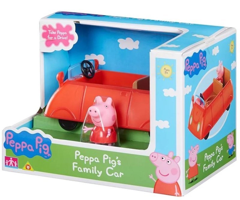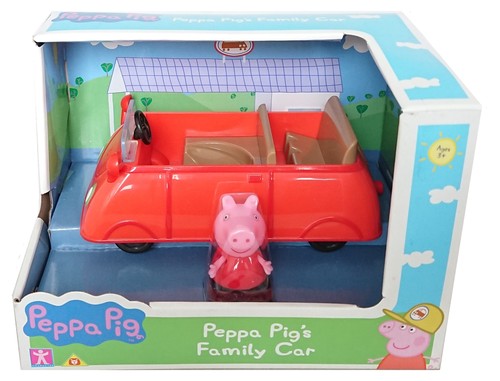 Rodzinne autko Peppy to zabawny pojazd, w którym z przodu jest miejsce dla mamy lub taty, a z tułu dla Peppy i Georga. W zestawie z autkiem znajduje się figurka Peppy.