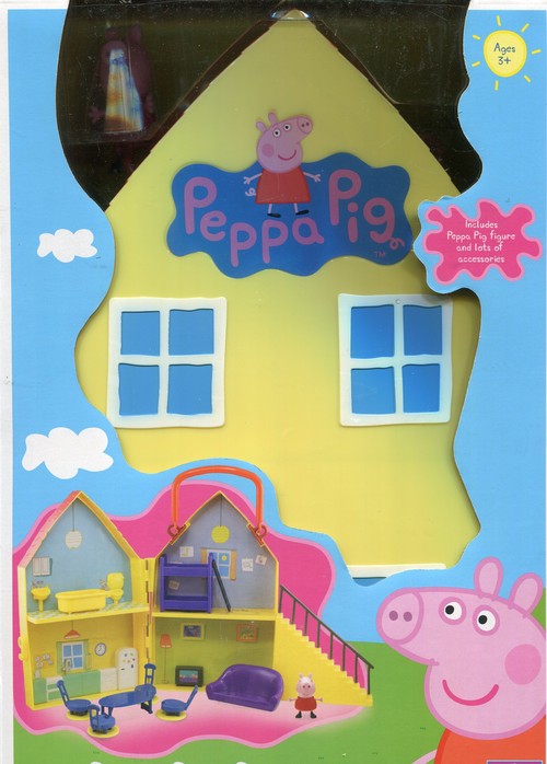 Domek do zabaw Peppy nawiązuje do bajki. Piętrowy domek w swoim wnętrzu oferuje do dyspozycji 4 pomieszczenia i mebelki: łazienkę na poddaszu, sypialnię Peppy i Georga z piętrowym łóżkiem, kuchnię i salon. Po zabawie wszystkie elementy można umieścić w środku.