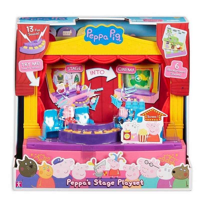 PEPPA- ZESTAW SCENA TEATRALNA POZWALA DZIECIOM ROZWIJAĆ WYOBRAŹNIĘ I TWORZYĆ WSPANIAŁE PRZEDSTAWIENIA. ZESTAW ZAWIERA 6 RÓŻNYCH OBRAZKÓW, KTÓRE STANOWI TŁO SCENY. SCENA POSIADA WIELE REKWIZYTÓW I WYDAJE RÓŻNE DŹWIĘKI. ZAMIEŃ SCENĘ NA KINO, PODŁCZ SWÓJ TABLET LUB TELEFON, ABY OGLDAĆ NAJNOWSZE ODCINKI PEPPY RAZEM Z PEPP I TWOIMI PRZYJACIÓŁMI. ZESTAW ZAWIERA 34 REKWIZYTY, PEPPĘ, GEORGA I ELEMENT GRAJCY.