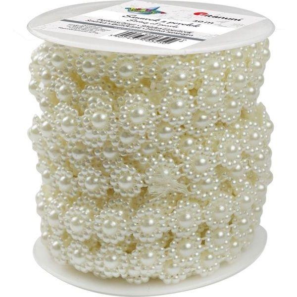 Opakowanie Perełki na sznurku kwiatki 10m kremowe