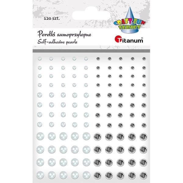 Perełki samoprzylepne okrągłe O3/4/6mm białe, srebrne 120szt.
