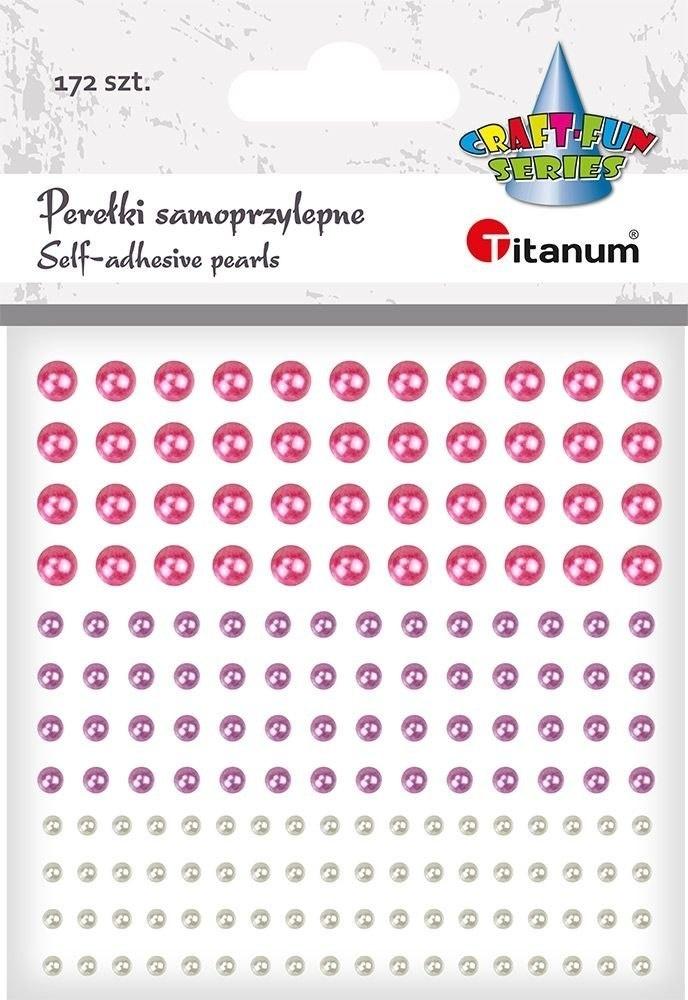 Perełki samoprzylepne okrągłe 5mm różowe, 4mm fioletowe, 2mm białe 172szt.