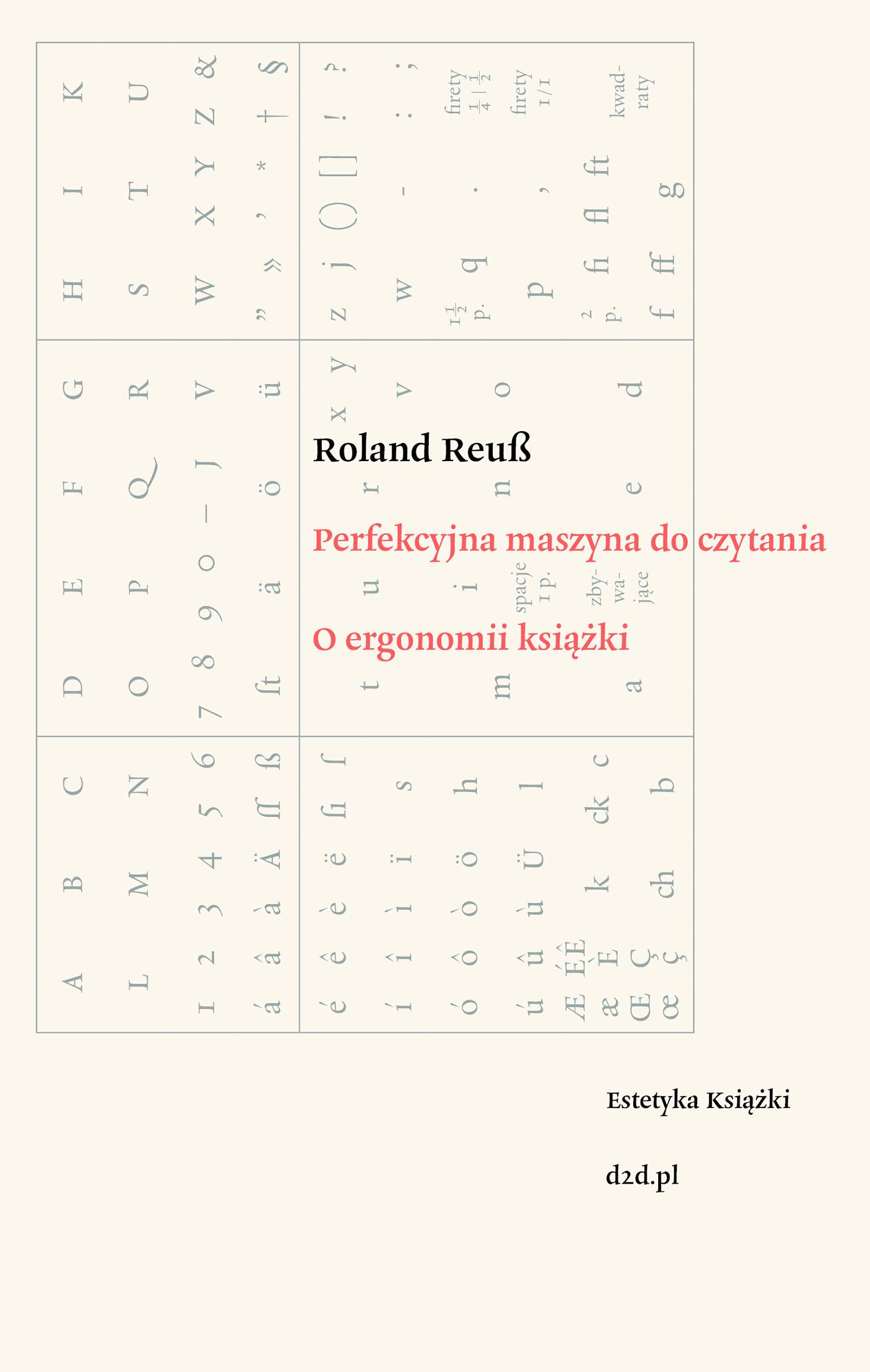 Druga, pozycja z serii „Estetyka Książki” porusza znaczenie formy i treści książki w komunikacji.Roland Reuß przedstawia i analizuje projekty i rozwiązania typograficzne, metody oprawy i wyroby papiernicze. Bada jak zmieniała się relacja między treścią a formą książki w ciągu ostatnich 200 lat.Niniejszy esej koncentruje się na zagadnieniu właściwej ergonomii książki, która jest i pozostaje najważniejszym elementem przekazu tradycji kulturowej i nie może być zastąpiona przez media cyfrowe ze względu na swój haptyczny i zmysłowy wymiar.Roland Reuß (ur. 1958) studiował germanistykę, historię, filozofię i muzykologię na Uniwersytecie w Heidelbergu. Współzałożył działający w ramach tej uczelni Instytut Krytyki Tekstu. Od 2007 roku jest profesorem literaturo­znawstwa na Uniwersytecie w Heidelbergu, a od 2008 roku profesorem honorowym edytorstwa naukowego na Wolnym Uniwersytecie w Berlinie. Razem z Peterem Staenglem był redaktorem historyczno-krytycznej edycji dzieł Franza Kafki oraz brandenburskiego wydania dzieł Heinricha von Kleista. Szerszej publiczności dał się poznać jako inicjator »apelu heidelberskiego« skierowanego przeciwko Google Books i open access. Jego najnowsze publikacje to: Das Ende der Hypnose. Vom Netz und zum Buch (2012), Fors. Der Preis des Buches und sein Wert (2013) oraz Philologie als Rettung (2016).