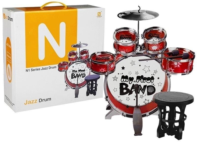 Duża perkusja z bębnami, talerzem i krzesłem Czerwona Perkusja jest idealnym prezentem dla dzieciaków - na pewno sprawi mnóstwo radości zarówno dużym, jak i małym. Taka rozrywka rozwija umiejętności muzyczne i zmysł słuchu, uczy odróżniania dźwięków. Ponadto gra na tym instrumencie stymuluje rozwój układu nerwowego i mózgu, rozwijając wyobraźnię. Co istotne, nawet maluszki potrzebują się uspokoić i rozładować napięcie, a przedstawiona zabawka doskonale sprawdzi się w roli pomocy. Dziecięca perkusja z akcesoriami wykonana jest z bezpiecznych, wysokogatunkowych materiałów, które świadczą o jej jakości i trwałości. Jest to zabawka z certyfikatem CE, dlatego śmiało możesz obdarować nią swojego malucha. Zachęcając dziecko do zabawy, być może przyczynisz się do rozwoju jego umiejętności i talentu. Jeśli Twoje dziecko już teraz wystukuje rytmy na różnych przedmiotach, jest energiczne i ruchliwe, zestaw perkusisty będzie idealny. Zestaw perkusisty składa się z: - 1 dużego bębna z pojedynczym pedałem, - 1 bębna średniego - 3 małych bębenków - kompletu pałeczek - talerza -Krzesła Wymiary elementów kompletu: - złożony zestaw: 54 cm x 60 cm, - duży bęben (Średnica): 38 cm Wymiary Opakowania : 40 cm x 39 cm x 15 cm