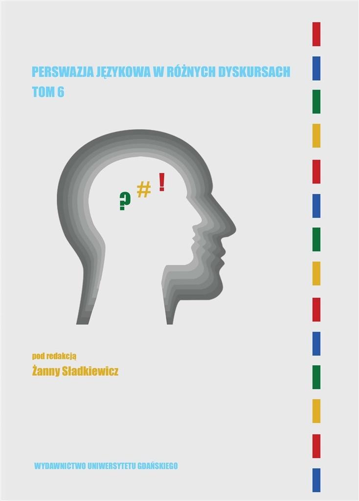 Perswazja językowa w różnych dyskursach. Tom 6 pod redakcją Żanny Sładkiewicz jest publikacją pokonferencyjną, powstałą na gruncie wystąpień uczestników Międzynarodowej Konferencji Naukowej: Mowa-Człowiek-Świat. Perswazja językowa w różnych dyskursach III, która odbyła się w dniach 13-14 maja 2021 roku na Uniwersytecie Gdańskim. Tematyka dotykająca wiedzy o sposobach oddziaływania językowego w różnych typach dyskursu: politycznym, medialnym, religijnym czy dydaktycznym zainteresuje językoznawców, literaturoznawców, socjologów, doktorantów, studentów, a także specjalistów z zakresu komunikologii, public relations.