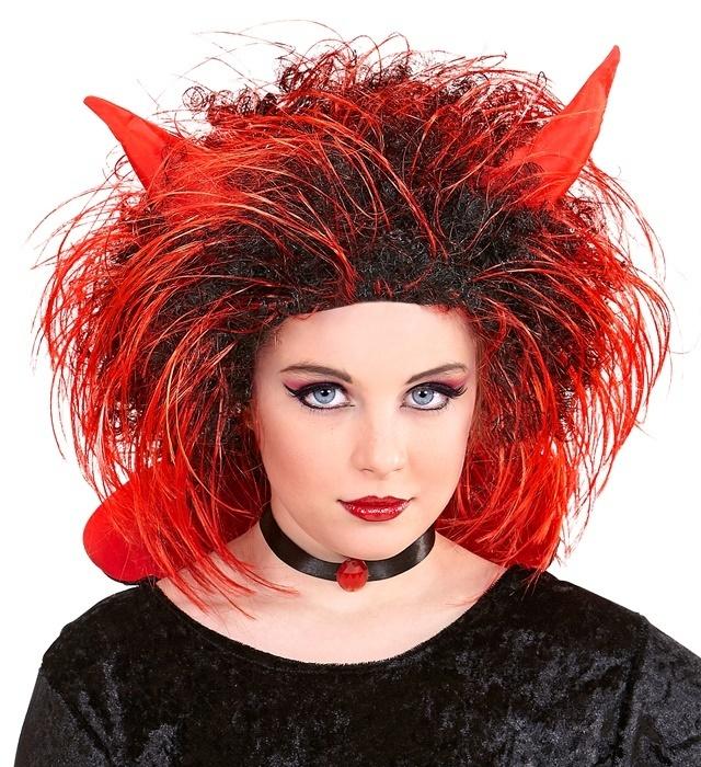 Peruka diablicy czarno czerwona z rogami