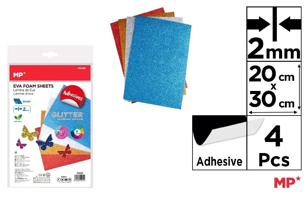 Pianka samoprzylepna brokatowa EVA 2mm 4 kolorów 20x30cm 4 arkusze MP