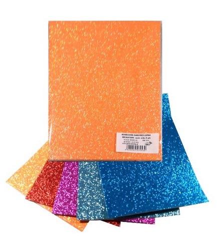 Mikroguma (pianka EVA) , samoprzylepna w kolorach brokatowych. Opakowanie zawiera 5 arkuszy w formacie 20x30 cm w kolorach jak na zdjęciu.