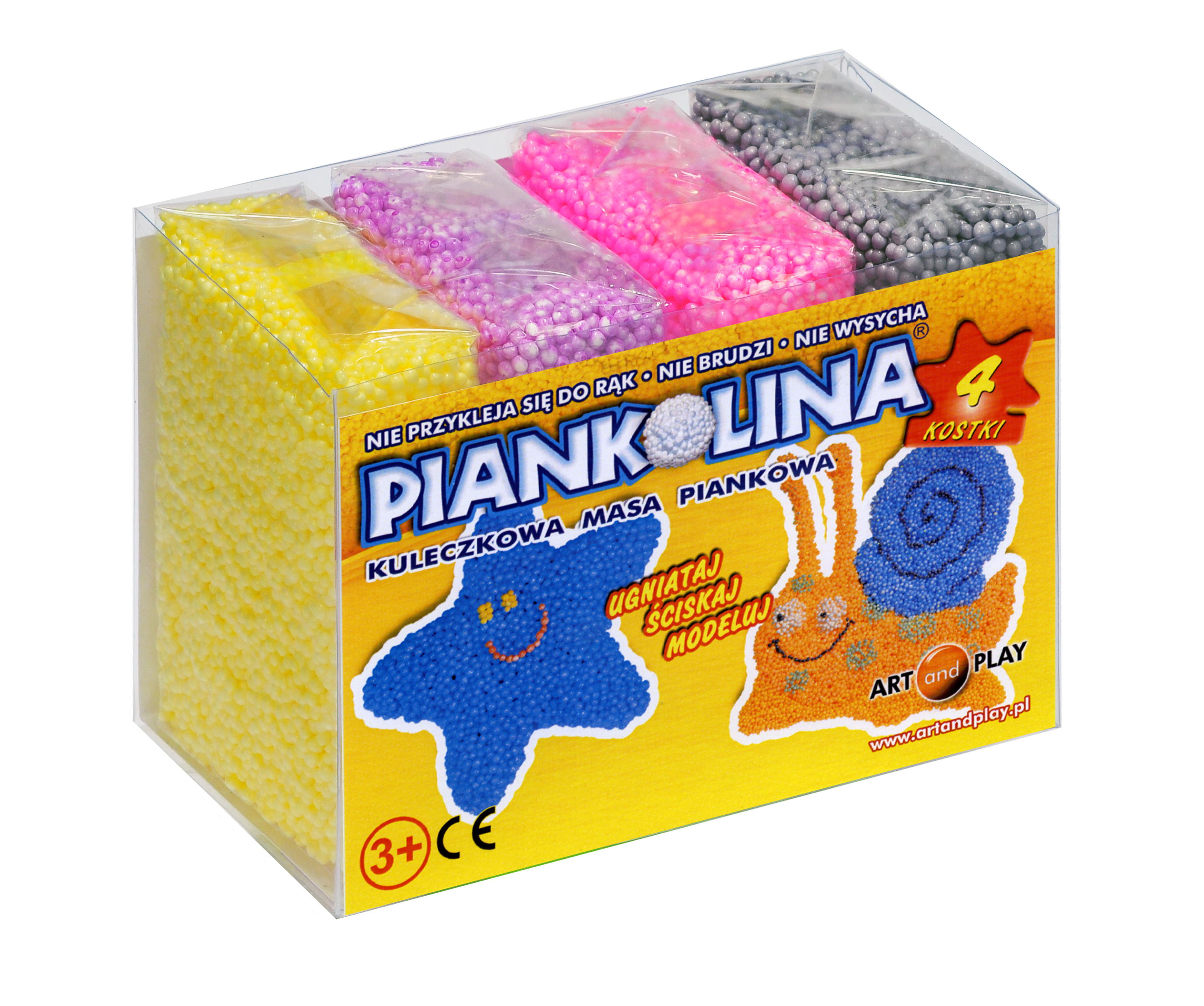 PIANKOLINA(R)To kreatywna zabawka w postaci lekkiej i miękkiej masy plastycznej. Można z niej modelować figury przestrzenne i płaskie.Piankolina nie brudzi, nigdy nie wysycha, nie przykleja się ani do rąk ani do ubrania.Jest to zabawka zarówno dla chłopców jak i dla dziewczynek.Dla wszystkich dzieci powyżej 3 lat.