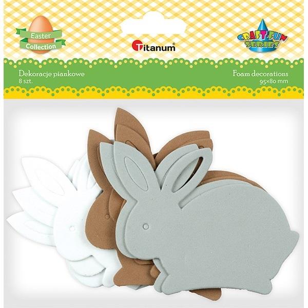Piankowe króliki 95 x 80 mm. 3 x białe, 3 x jasnobrązowe, 2 x szare, 8 szt.