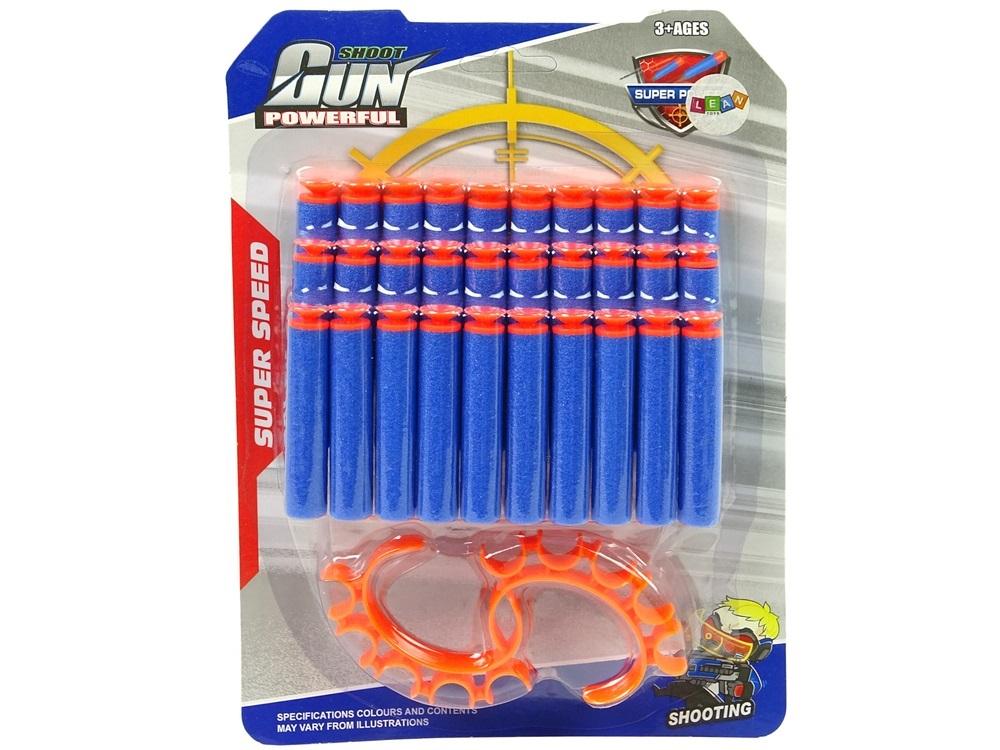 Zestaw składa się z 30 sztuk naboi oraz dwóch opasek, w których można umieścić piankowe naboje, co pomoże mieć je zawsze pod ręką, w krytycznym momencie bitwy nigdy ich nie zabraknie. Udana zabawa gwarantowana!