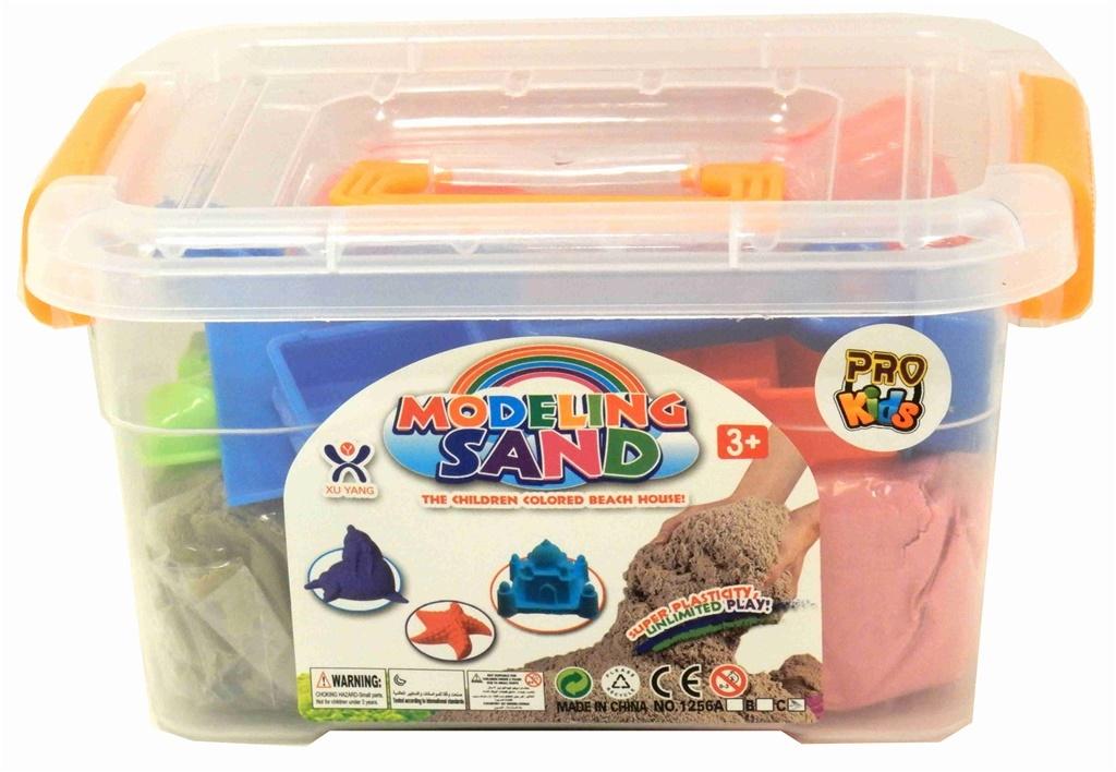 Piasek o specjalnych właściwościach do modelowania. Dzięki unikalnej budowie piasek sprawia wrażenie prawdziwego i nie rozsypuje się. Do zestawu dołączono elementy dodatkowe jak łopatkę, grabki oraz foremki dzięki, którym będzie można tworzyć piękne babki z piasku. Wspaniały zestaw pobudza wyobraźnię dziecka i rozwija umiejętności manualne. Zestaw piasek do modelowania zapakowany w kuferek. Dołączono łopatkę, grabki oraz foremki do modelowania.