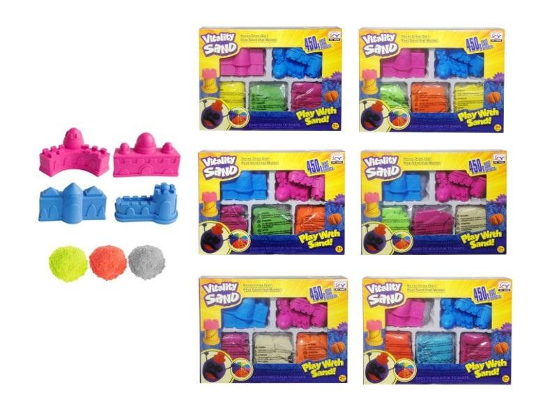 Piasek kinetyczny to magiczny piasek który zachowuje się jak mokry piasek, lecz nigdy nie wysycha. Piaskolina doskonale daje się formować, a przy tym nie brudzi rąk, ubrań, a także podłoża na którym się znajduje. Piasek kinetyczny jest idealną zabawką rozwijająca umysł dziecka! Pobudza wyobraźnie i zachęca do tworzenia własnych nowych kształtów w czym mogą pomóc foremki dołączone do zestawu. W zestawie znajdują się 3 kolory piasku oraz foremki pomocne do stworzenia zamku.