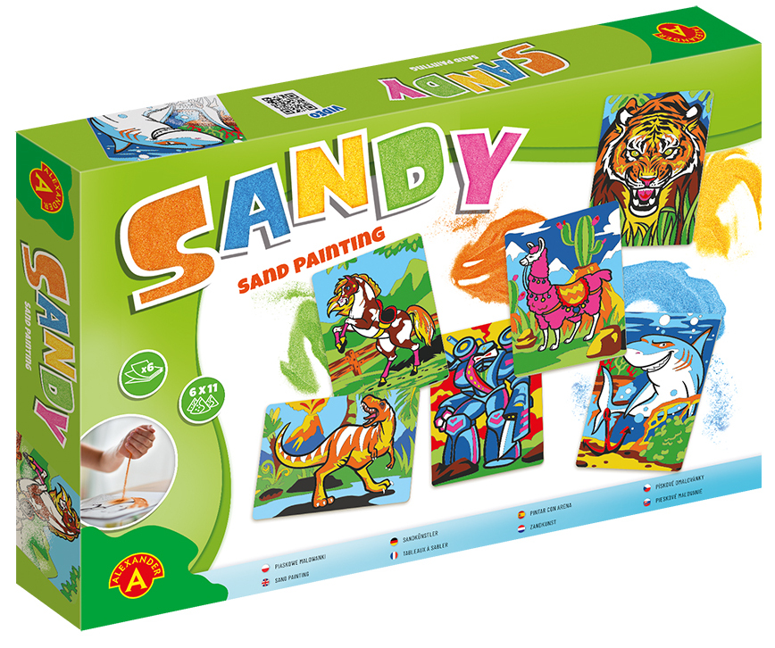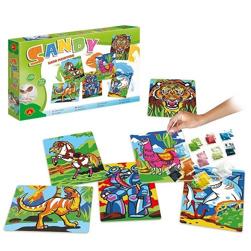 Uwielbiana przez dzieci, artystyczna zabawa malowania piaskiem, polegająca na odsłanianiu kolejno poszczególnych, naciętych elementów obrazka, tak by odkryć klejącą powierzchnię. Odsłonięte elementy posypuje się piaskiem, w kolorze zgodnym ze wzorem lub według własnej wyobraźni, tworząc piękną ilustrację.