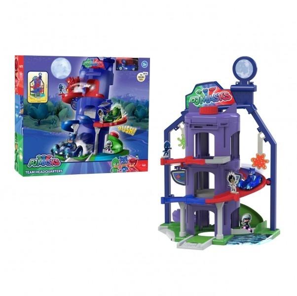 3 poziomowa siedziba zespołu Pidźamersów, wyrzutnia, winda, pojaz z figurką Kotboya. Wymiary zabawki: 29,5 x 25 x 42,5 cm.