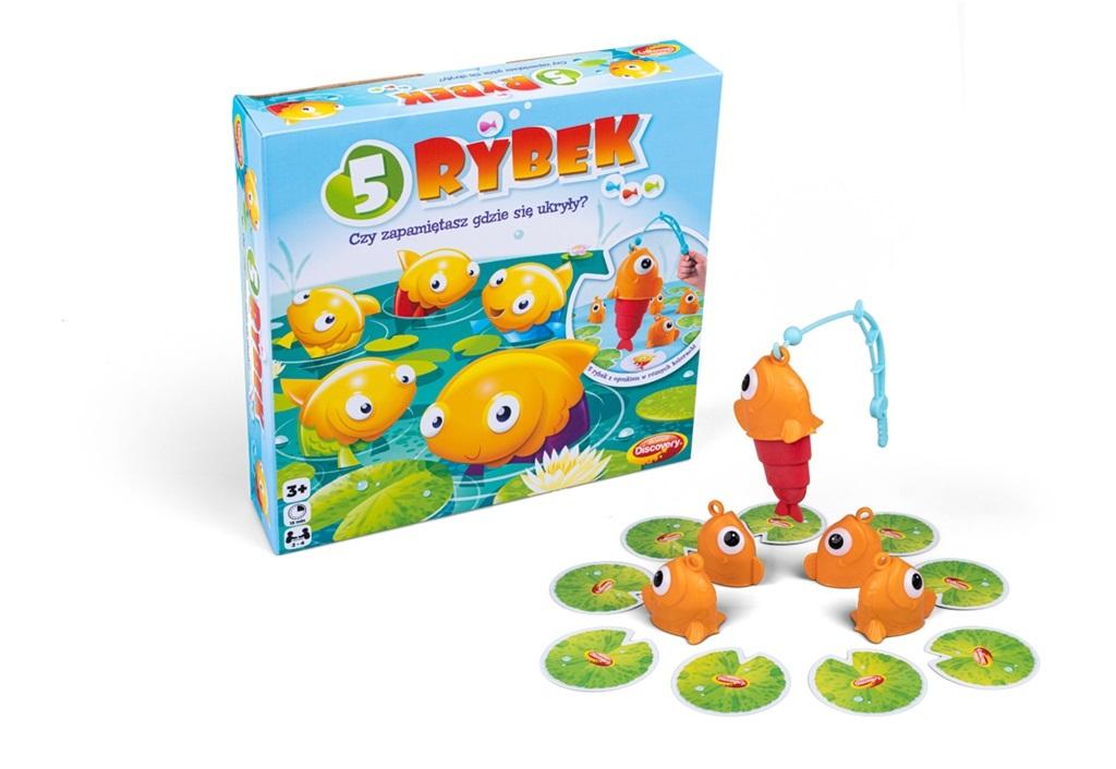 Sprawdź swoją pamięć i koncentrację, biorąc udział w ekscytującym połowie kolorowych rybek! Wylosuj kartę z podobizną rybki, wybierz spośród pięciu teleskopowych rybek tę, której kolor ogonka będzie zgadzał się z kolorem rybki na wylosowanej karcie oraz złów ją na wędkę. Jeśli sprostasz wyzwaniu, możesz zatrzymać kartę, jeśli nie, odłóż ją do pudełka, aby nie pomyliła się z kartami zebranymi przez graczy. Na koniec gry wszyscy zliczają punkty, wygrywa ten spośród Was, kto zgromadził ich najwięcej. Żeby nie było tak łatwo, w stawie poza rybkami pływa też żaba maruda! Kto ją wylosuje, traci kolejkę, a do tego musi oddać jedną ze swych rybek.