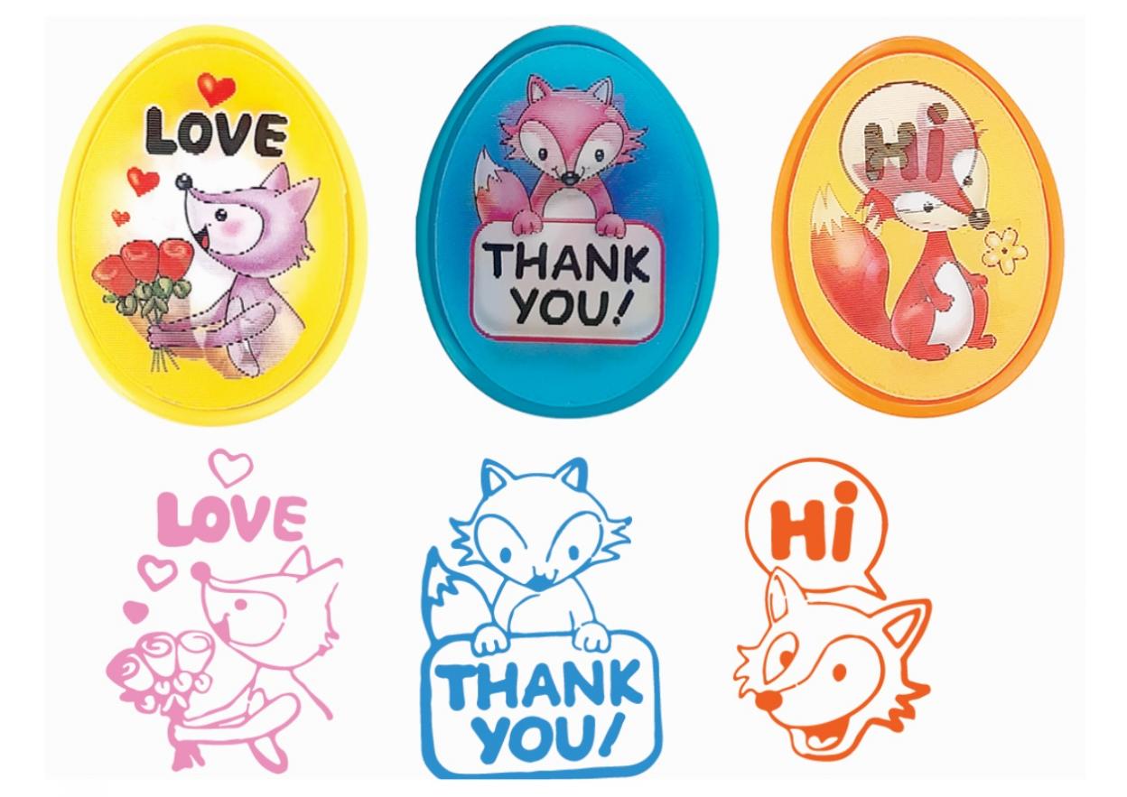 Owalna pieczątka z tuszem. Na pokrywce trójwymiarowy obrazek zmieniający się pod wpływem położenia.