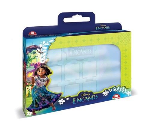 Pieczątki na licencji Encanto. W skład zestawu wchodzą: 7 pieczątek, 3 pisaki, 1 poduszeczka do tuszu i 1 notatnik. Dla dzieci w wieku od 3 lat