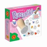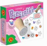 Zestaw kreatywny dla dzieci składający się z 6 pieczątek z ulubionymi motywami dziewczynek (motylek, serduszko, miś, jednorożec, kwiatek, gwiazdka), które można odbijać na kartce czarnym i czerwonym tuszem z poduszek znajdujących się w specjalnym, plastikowym pudełku. Odbite kształty można kolorować kredkami lub dodatkowo ozdabiać nimi swoje rysunki. 135 kolorowych naklejek urozmaica zabawę. Wszystkie elementy znajdują się w eleganckiej, funkcjonalnej wyprasce.