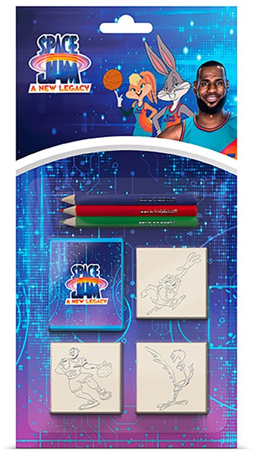 Pieczątki na licencji Kosmiczny Mecz. W skład zestawu wchodzą: 3 drewniano-gumowe pieczątki, 1 poduszeczka do tuszu i 3 kolorowe kredki ołówkowe. Zawartość: 3 drewniano-gumowe pieczątki, 1 poduszeczka do tuszu i 3 kolorowe kredki ołówkowe