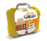 Pieczątki na licencji Minionki. W skład zestawu wchodzą: 5 pieczątek, 1 poduszeczka do tuszu, 1 notatnik, 36 naklejek i 10 kredek.