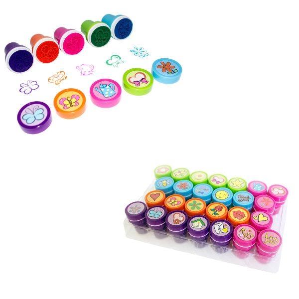 Zestaw 26 pieczątek dekoracyjnych z różnymi motywami, np.:motylki, serca, kwiatki.