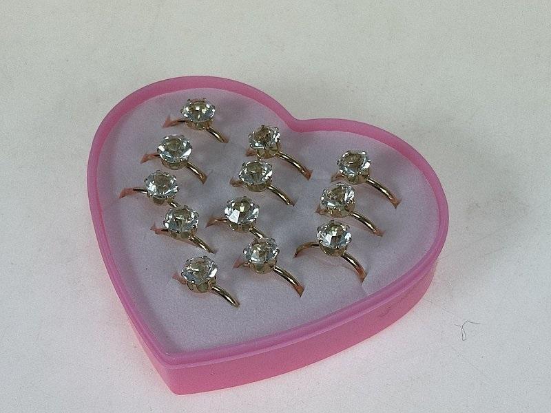 zestaw 12 szt. pierścionków metalowych, regulowanych ze sztucznym diamentem