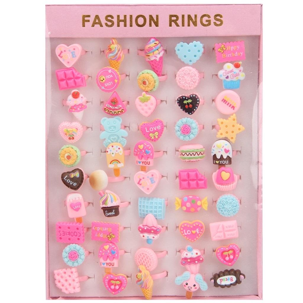 Pierścionki słodycze z motywami cukierków, ciastek, pączków, tortów itp.
