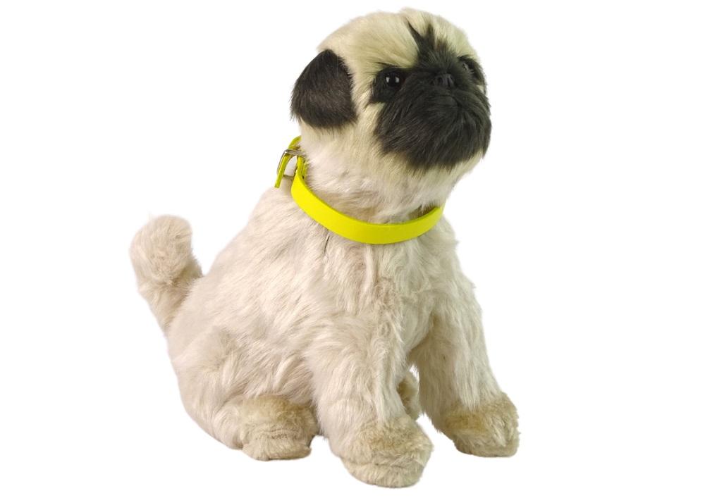 Interaktywny Pluszowy Piesek Mięciutkie Futerko Rasa Mops Pogłaszcz go po głowie i poznaj jego funkcje ! Jeśli Twoje dziecko marzy o własnym piesku - opiece nad nim, głaskaniu, przytulaniu zwierzątka i chce mieć swojego przyjaciela to interaktywny piesek to świetny kompan zabaw! Pomożemy spełnić to marzenie. Uruchamia się po pogłaskaniu głowy: zaczyna szczekać, węszyć, poruszać główką i ogonkiem. Z każdym kontaktem piesek będzie reagował. Twój maluch poczuje, jakby miał prawdziwe zwierzątko. Zabawka nie tylko wywoła uśmiech na jego twarzy, ale i wesoło spędzi wolny czas. Będzie to początek do posiadania własnego zwierzęcia i nauki odpowiedzialności za zwierzę poprzez zabawę oraz sumienności w wykonywaniu obowiązków. Zaprocentuje to w przyszłości. A kto wie, może dzięki temu, jak maluch będzie opiekował się małym pieskiem, zasłuży na prawdziwego. Futerko pieska w kolorze beżowo-czarnym jest niezwykle miękkie i przyjemne w dotyku. Kolor oczu ciemny z otoczką brązowego . Żółta, zdejmowana obroża na szyi dodaje mu uroku. Wymiary pieska : 19 cm x 17 cm x 13 cm Wymiary opakowania: 20 cm x 18 cm x 13 cm Zabawkowy piesek zapakowany jest w przezroczystą folię. Przeznaczony jest dla wszystkich dzieci, które ukończyły 3. rok życia. Piesek posiada certyfikat CE, co jest potwierdzeniem, że spełnia wymagania dyrektyw Unii Europejskiej. Zgodny z normą EN71. Jest to bardzo bezpieczna zabawka, pozbawiona ostrych elementów, przyjemna w dotyku. Do zabawy z pieskiem potrzebujecie 3 sztuk baterii 1,5V "AA". Wejście na baterie znajduje się pod spodem, pod futerkiem.