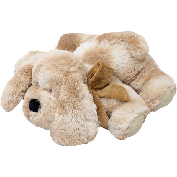 Pies Roddy to leżący pluszak w kolorze beżowym,
