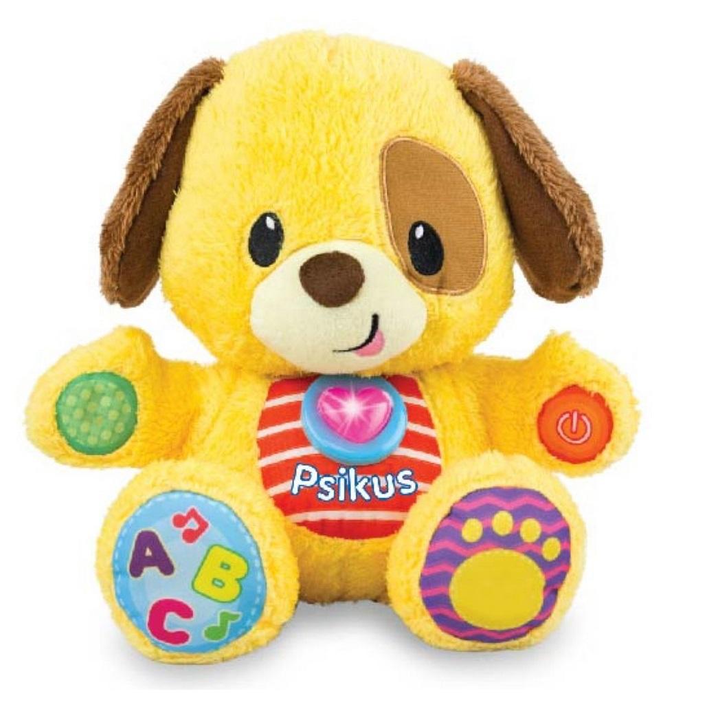 Piesek nazywa się Psikus. Opowiada 2 bajki: 'Kot w butach' i 'O rybaku i złotej rybce'. Śpiewa 2 piosenki o pieskach. Wypowiada krótkie teksty zachęcające do zabawy. Dziecko chętnie włączy się we wspólne powtarzanie tekstów, śpiewanie piosenek.
