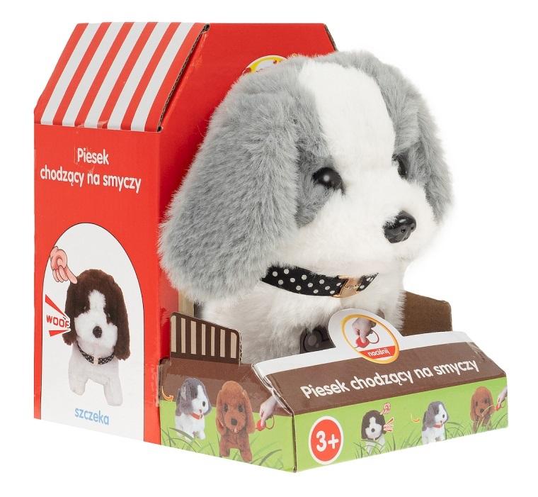 Łatwość obsługi: Piesek jest łatwy w obsłudze. Wystarczy włączyć go za pomocą przycisku, aby zaczął się ruszać i wydawać dźwięki, chodzi prowadzany na smyczy .