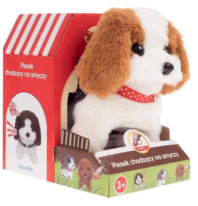 Łatwość obsługi: Piesek jest łatwy w obsłudze. Wystarczy włączyć go za pomocą przycisku, aby zaczął się ruszać i wydawać dźwięki, chodzi prowadzany na smyczy .