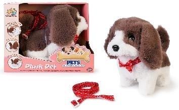 W zestawie: piesek, smycz, Funkcje: chodzi do przodu, szczeka, macha ogonem, Pozostałe informacje: wys. pieska 14 cm, wym. opak. 17,5 x 10 x 4,5 cm, baterie 2 x aa niedołączone, 3+
