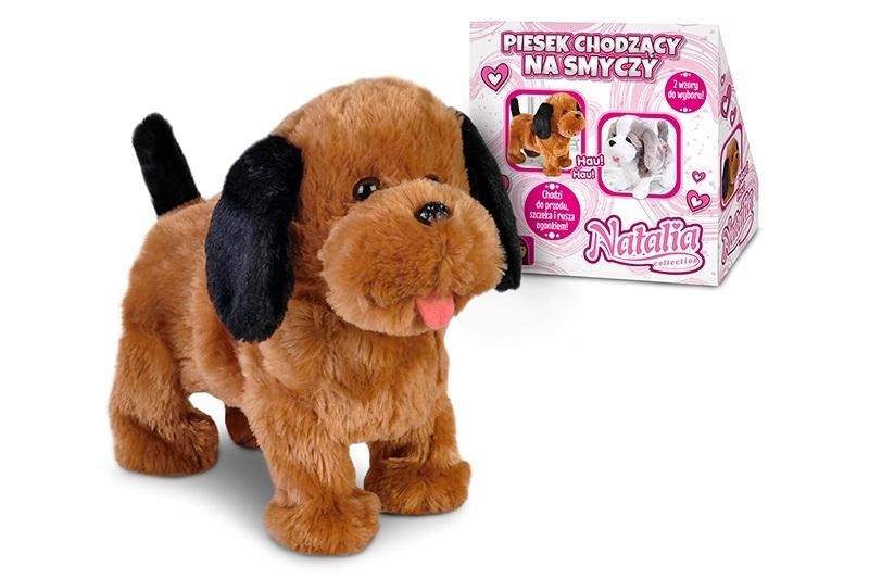 Funkcje: po naciśnięciu przycisku chodzi do przodu, szczeka, merda ogonkiem.